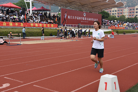 紧接着就是最激动人心的教工男子800米决赛,老师王鸿辉,身着黄色条纹,在第1组第1道位做着准备活动。yd12399云顶集团的同学高声呼喊着环院加油的口号,老师还亲切的向看台上的同学们挥手,示意自己已经准备好。第一圈跑下来,老师一直保持着前几名的好成绩,尽管早已汗流浃背,但他的每一步的前进,都充满执著和坚定。老师用他的实际行动向同学们诠释了努力拼搏,永不服输的运动精神,大家的加油声紧紧跟随着老师的身影,陪伴着老师一起跑过这800米。