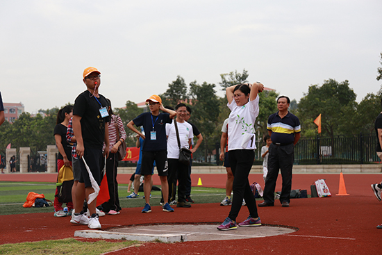 而在决赛中二工会的罗灿老师蓄力一投,完成了8.05米的好成绩,力压群雄拿到冠军,而马嫱老师也努力地完成比赛,她屏住呼吸,站稳投掷姿势,慢慢托起实心球,蓄势完毕后,双手奋力一抛,实心球在天空划出一道优美的弧线,最终她在卢院长的指导下以第五名的优异成绩完赛。马嫱老师孤注一“掷”的执着为环境学院赢得了宝贵的分数。