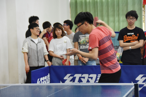 4月10日中午12:30,厦门大学嘉庚学院第九届乒乓球学院赛在风雨球馆的乒乓球室准时打响。参赛选手经过简单的热身后,裁判开始进行分组,随之比赛正式开始。