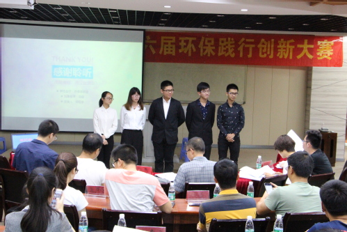 2017年5月11日中午12:30,“传人伯威杯”第六届环保实践创新大赛决赛在经管201正式举行。本次大赛邀请陈铮老师、陈志杰老师、张静老师、林建荣老师、谢志勇老师担任评委。在之前经过一系列的比拼后,最终有五支队伍杀进决赛。